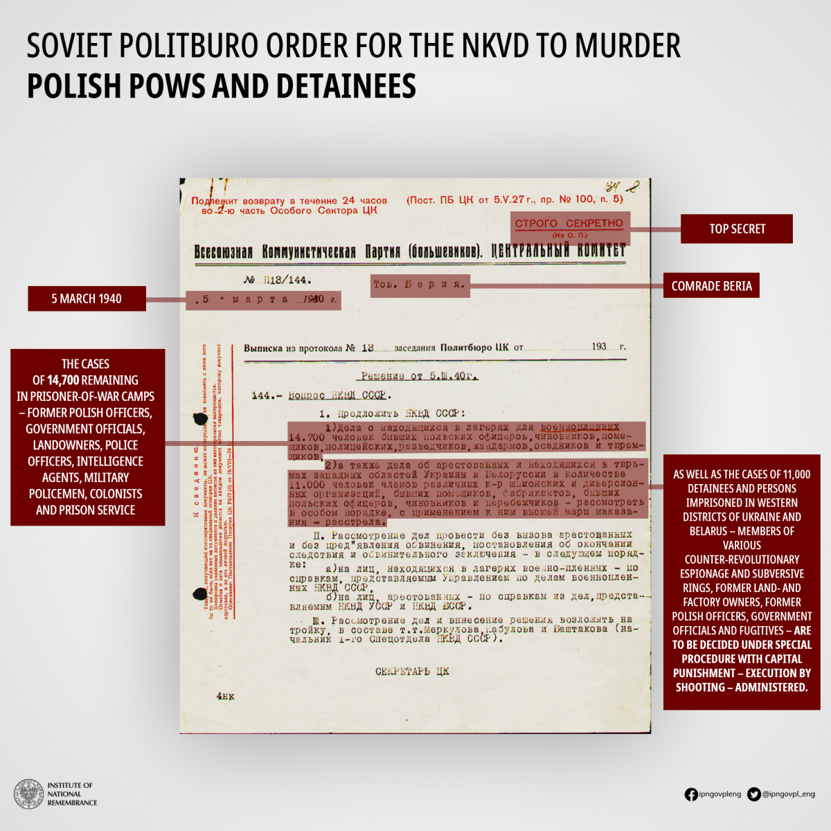 Soviet Politburo Order for the NKVD to Murder Polish Pows and Detainees