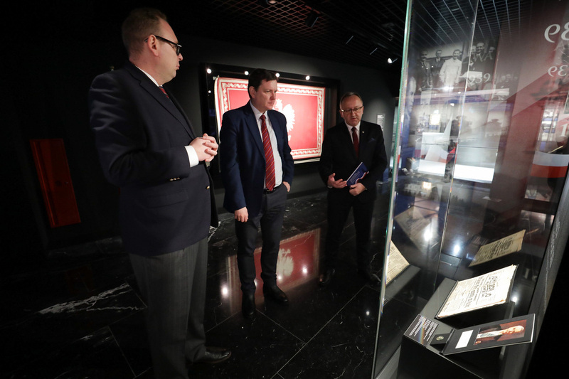 On 21 December 2022, the IPN Deputy President Prof. Karol Polejowski met with Latvian Ambassador Juris Poikāns in the Temple of Divine Providence in Warsaw, where they visited the Mausoleum of the Presidents of the Republic of Poland in Exile and the Memorial Chamber. Przemysław Gasztold, Ph.D., from the IPN Historical Resarch Office, presented the project related to the culmination of the 100th anniversary of Poland's regaining independence.