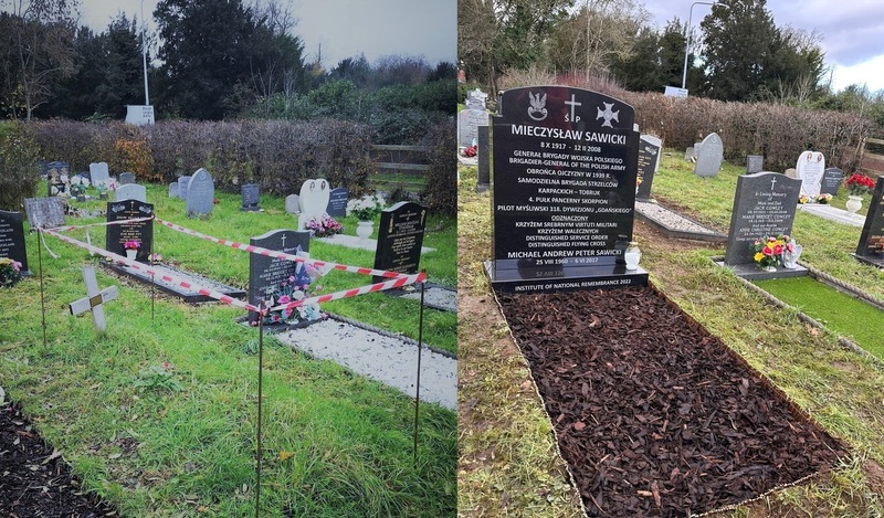 The ceremony of consecration the tombstone of General Mieczyslaw Sawicki took place at the St. Peter Churchyard cemetery in Iver, near London on the 15th anniversary of the General's death. The gravestone monument was funded by the IPN's Office for Commemorating the Struggle and Martyrdom. The event was attended by the Consul of the Republic of Poland Tomasz Balcerowski and the Director of the Office for Commemorating the Struggle and Martyrdom Adam Siwek. The ceremony was also witnessed by representatives of the Polish community in the UK, including the President of the Association of Polish Airmen in the UK Artur Bildziuk and a representative of the Polish Places in the UK website Marcin Kunicki. General Sawicki's daughter Sophie Sawicka, who lives permanently in Spain, came especially for the event. The gravestone was consecrated by the Deputy Director of the Polish Catholic Mission in England and Wales, Rev. Prof. Władysław Wyszowadzki.