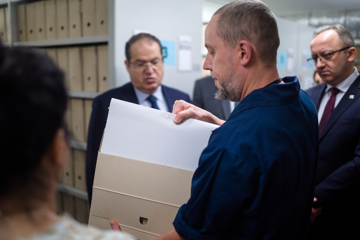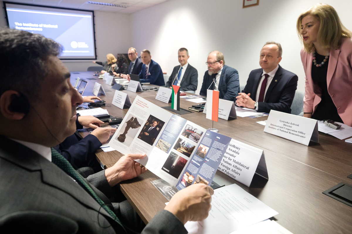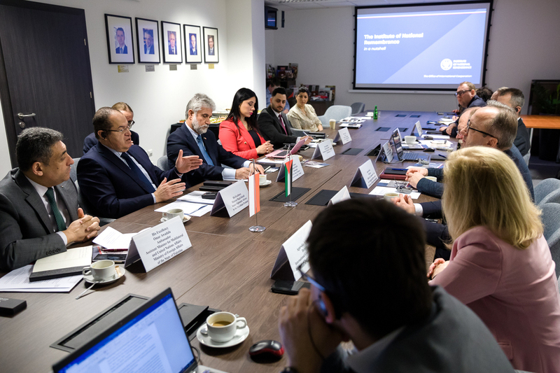 On 17 March 2023, the IPN Headquarters and the Archive were visited by representatives of the government and diplomats of the State of Palestine. The purpose of the visit was to share the information about the Institute's activities and its experience in terms of transitional justice, including the model of dealing with the crimes committed by totalitarian regimes. The visit was organized by the IPN Office of International Cooperation.