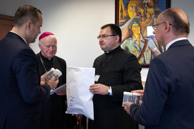 Archbishop Adam Szal and Rev. Witold Burda — postulator of the Ulmas beatification process — handed over the artefacts to the IPN President Karol Nawrocki, Ph.D. and Deputy President Mateusz Szpytma, Ph.D.