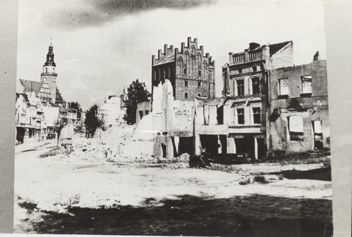 According to the initial estimates of the Reconstruction Department of the Office of the Plenipotentiary of the Government of the Republic of Poland for the Masurian District of the Republic of Poland, after the Soviets occupied Olsztyn, 1040 buildings were destroyed, which accounted for 36% of the city’s existing structures. However, it is important to note that relatively few buildings were damaged as a result of direct military operations. A significant portion of destruction was caused by Soviet soldiers who set fire to buildings after the cessation of hostilities, without any military justification. This is confirmed by reports from Polish administrative authorities, which state: ”Wherever Red Army troops and units leave the area, the intensity of theft, arson, rape and crimes intensifies where these units stay or pass through”. Deliberate arson by intoxicated Red Army soldiers was not uncommon. This was the case, for instance, in Ek, Kętrzyn, and Olsztyn, where the initial damage was comparatively minor but, after a few weeks, increased and exceeded the initial losses. Numerous streets and neighbourhoods in Olsztyn were entirely destroyed, and nearly half of the buildings in Olsztyn's Old Town were consumed by flames. Similar devastation occurred in the vicinity of streets now known by such names as: Grunwaldzka, Szrajbera, Warszawska, Limanowskiego, Wojska Polskiego, Niepodległości, Knosały, Kościuszki, and Mickiewicza. In a report by Colonel Jakub Prawin, the Plenipotentiary of the Government of the Republic of Poland for the Masurian District, it is stated: ”Towns in the Masurian District were destroyed by 30 to 50%. Military buildings were looted.