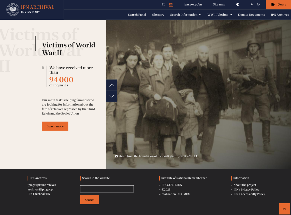 On 18 December 2023, we are celebrating the twenty-fifth anniversary of the acceptance of the Act on IPN by the Polish Sejm, which created the legal basis for the activity of the Institute’s archival division. For this occasion, a new version of the website was made available, where you can make use of the “IPN Archival Inventory”.