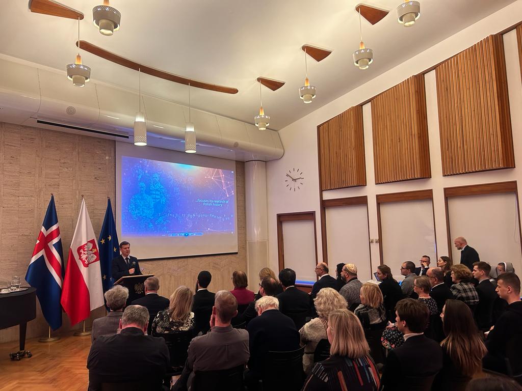 The Ulma Family was commemorated at the Polish Embassy in Reykjavík. The meeting was opened by a welcoming address by the Polish Ambassador to Iceland, Gerard Pokruszyński focused on the tragic story of the Ulma Family. The Deputy President of the IPN Mateusz Szpytma, Ph.D., outlined the historical background and presented the unique photos taken by Józef Ulma. Prof. Marek Wierzbicki, representing the IPN Historical Research Office, gave lecture about the Holocaust.