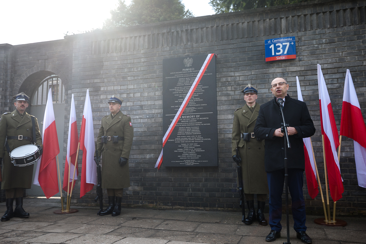 A plaque dedicated to the deeds of the Sisters of the Holy Family of Nazareth Warsaw Convent was unveiled on Saturday, 16 March 2024 at 1:00 at 137 Czerniakowska Street in Warsaw. The IPN was represented by its Deputy President Mateusz Szpytma, Ph.D. and the Director of the Warsaw Branch of the Institute, Tomasz Łabuszewski Ph.D.