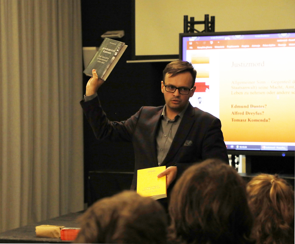 The floor was then taken by Konrad Graczyk, Ph.D., Deputy Director of the IPN Office of Historical Research, who talked about the judicial murders. He discussed the case of a Pole wrongfully executed by a German Nazi court, Ignacy Kaczmarek. An IPN publication, Die Kämpfende Republik: Polen 1939-1945 by Dr. Maciej Korkuć, Head of the Branch Office for Commemorating the Struggle and Martyrdom in Cracow was presented to the guests.