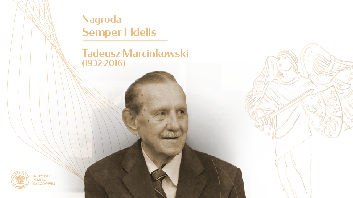 A popularizer of the Borderlands, he actively worked for the commemoration of Volhynia. He was born in Lutsk, from where he was deported to Siberia with his mother and sister in 1941. His father, arrested in 1930 by the NKVD, was murdered in Kyiv and buried in one of the death pits in Bykivnia, near Kyiv. After the war, Tadeusz Marcinkowski and his family settled in Zielona Gora.