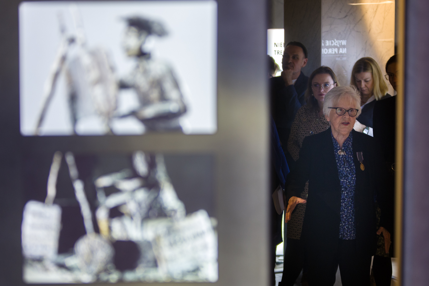 The IPN is grateful for her involvement in the project, as part of which she agreed to lend her husband's sculptures to the Institute free of charge, as well as to appear at the opening ceremony of the 2020 exhibition as a guest of honor. Krystyna Willenberg guided official guests through the exhibition, and also took part in an educational workshop for Polish youth. Her short stay in Warsaw was also an opportunity to give numerous press statements, in which she spoke about both her wartime experiences and those of her late husband. Mrs. Willenberg also took an active part in subsequent installments of the project in various locations across Poland, including the 2023 commemoration of the anniversary of the Treblinka revolt, where the exhibition was presented in an outdoor version.