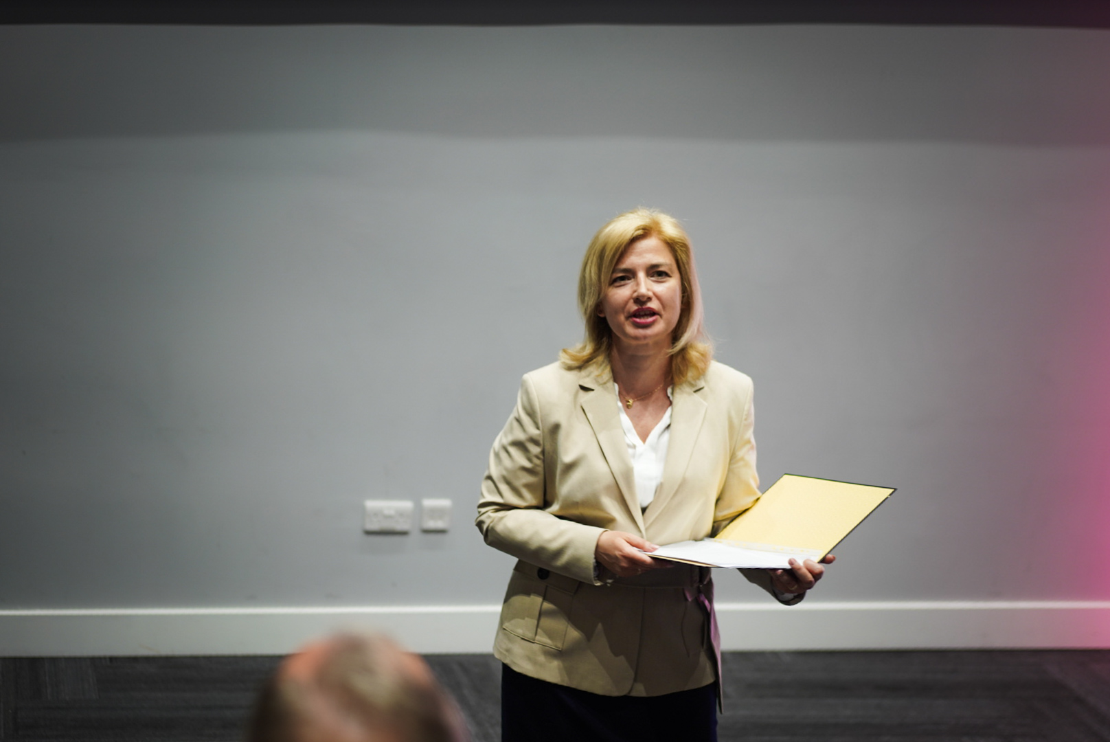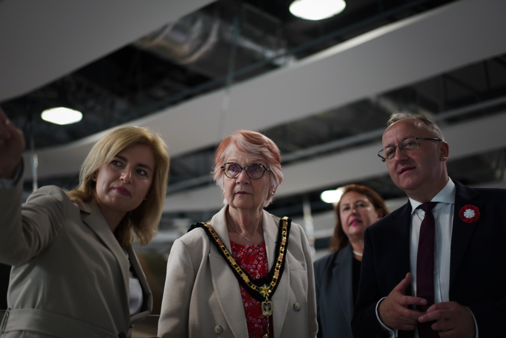 The IPN delegation with Deputy President Karol Polejowski and Office of International Cooperation Director Agnieszka Jędrzak outlined Poland's role in WW2 and showed the audience, which included Mayor of Hillingdon Colleen Sullivan, around the exhibit.