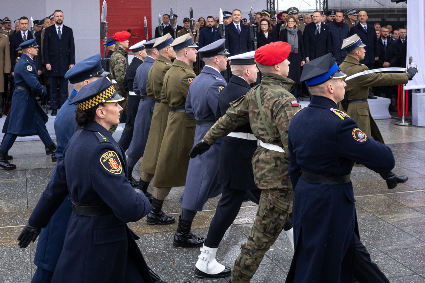 On that day, the tomb was unveiled during a special ceremony. Since then, earth from various battlefields where Polish soldiers have fought has been added to the urns. The memory of the fallen is represented by the constantly lit eternal flame and the change of guard every hour, daily.On 3 November, an official ceremony marking the 100th anniversary of the Tomb of the Unknown Soldier was held at Piłsudski Square in Warsaw.