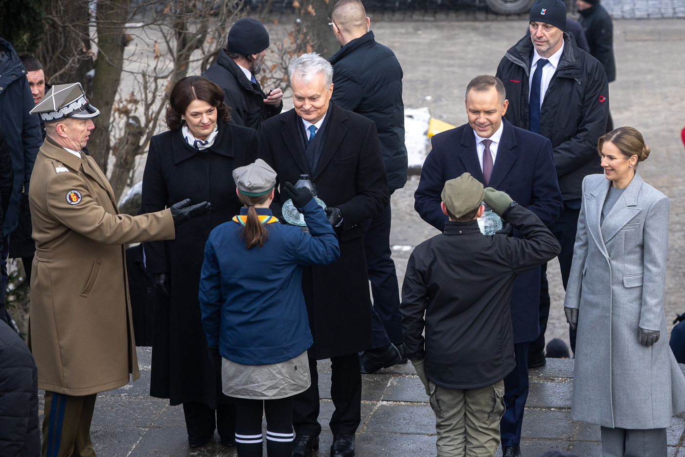 On the escarpment of the Citadel, the Presidents, accompanied by their spouses and scouts, lit candles at the symbolic graves of the January Uprising insurgents.