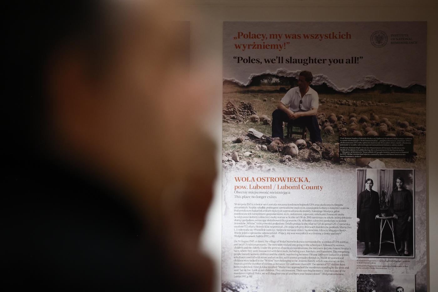 The event also featured an exhibition prepared by the Lublin Branch of the IPN: “Volhynia 1943: Victims, Accounts, and Places of Memory.” It showcased contemporary photographs of monuments, graves, and crosses located in pre-war Volhynian villages - now vanished - or at former Roman Catholic and Orthodox cemeteries. Paweł Sokołowski, the co-author of the exhibition, guided visitors through the display.
