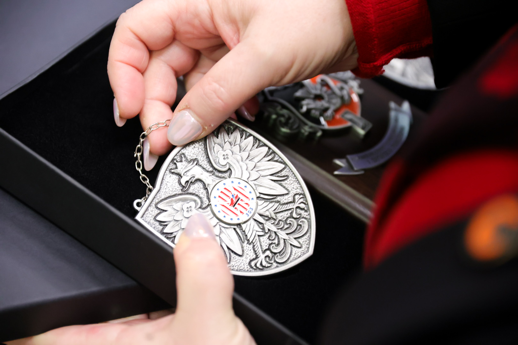 The bronze medal Reipublicae Memoriae Meritum to the Association of Families of the 1st Polish Armoured Division was awarded. This distinction is granted for outstanding contributions to public and social activities aimed at commemorating the history of the Polish Nation in the years 1917–1990, as well as for supporting the IPN in its educational work. He also presented commemorative plaques to Karolina Maczek-Skillen and Joanna Wielgat, President of the Association.