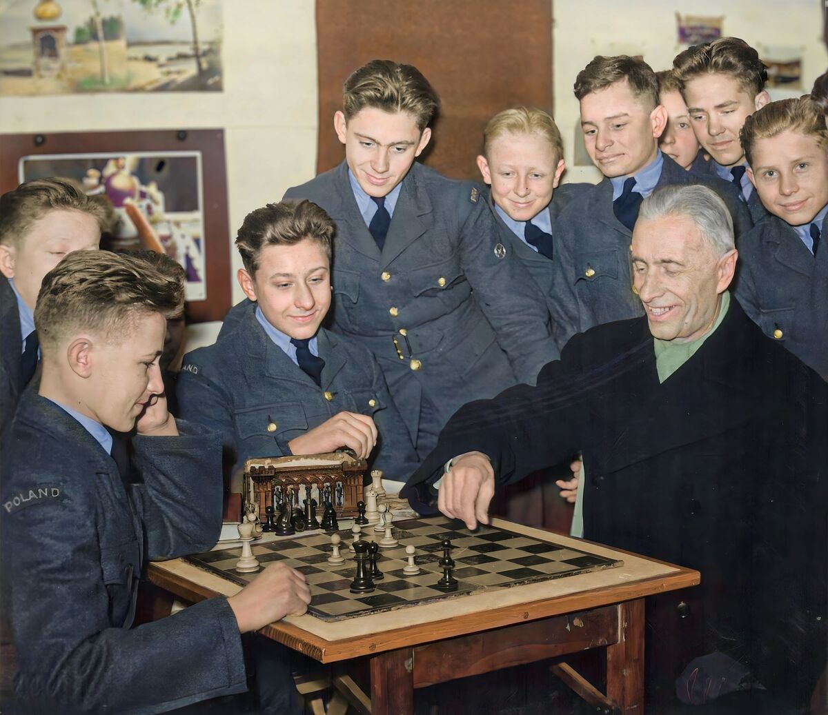 Polish President, Władysław Raczkiewicz, plays chess while visiting a cadet school, Scotland, 1943–1944 (photo: AIPN) -