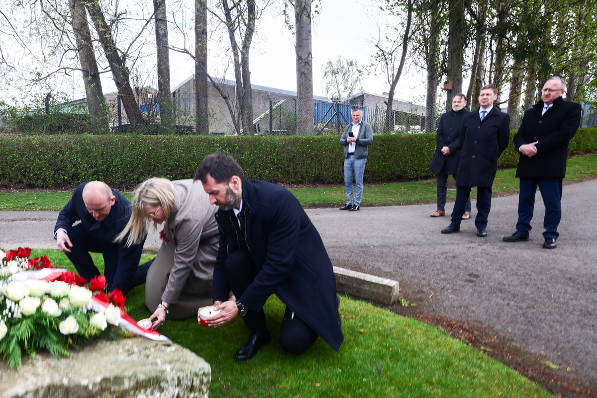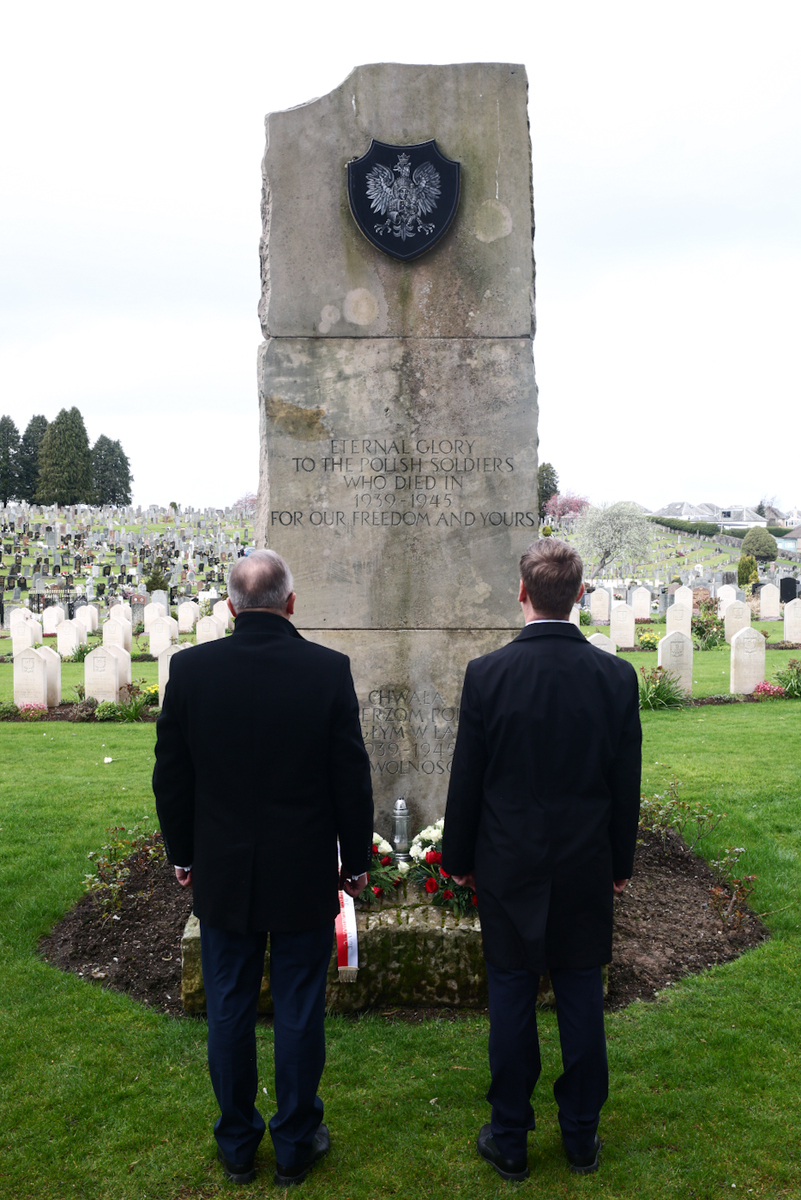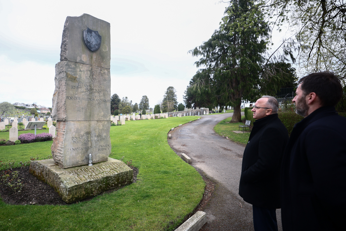 As part of the visit, the delegation paid tribute to Polish soldiers laid to rest in the Polish war graves section of Jeanfield and Wellshill Cemetery, where flowers were laid and candles were lit. More than 350 soldiers serving in various land units of the Polish Armed Forces stationed in Scotland are buried there. The cemetery contains the largest number of Polish war graves in Scotland and is the second largest site of its kind in the entire United Kingdom.