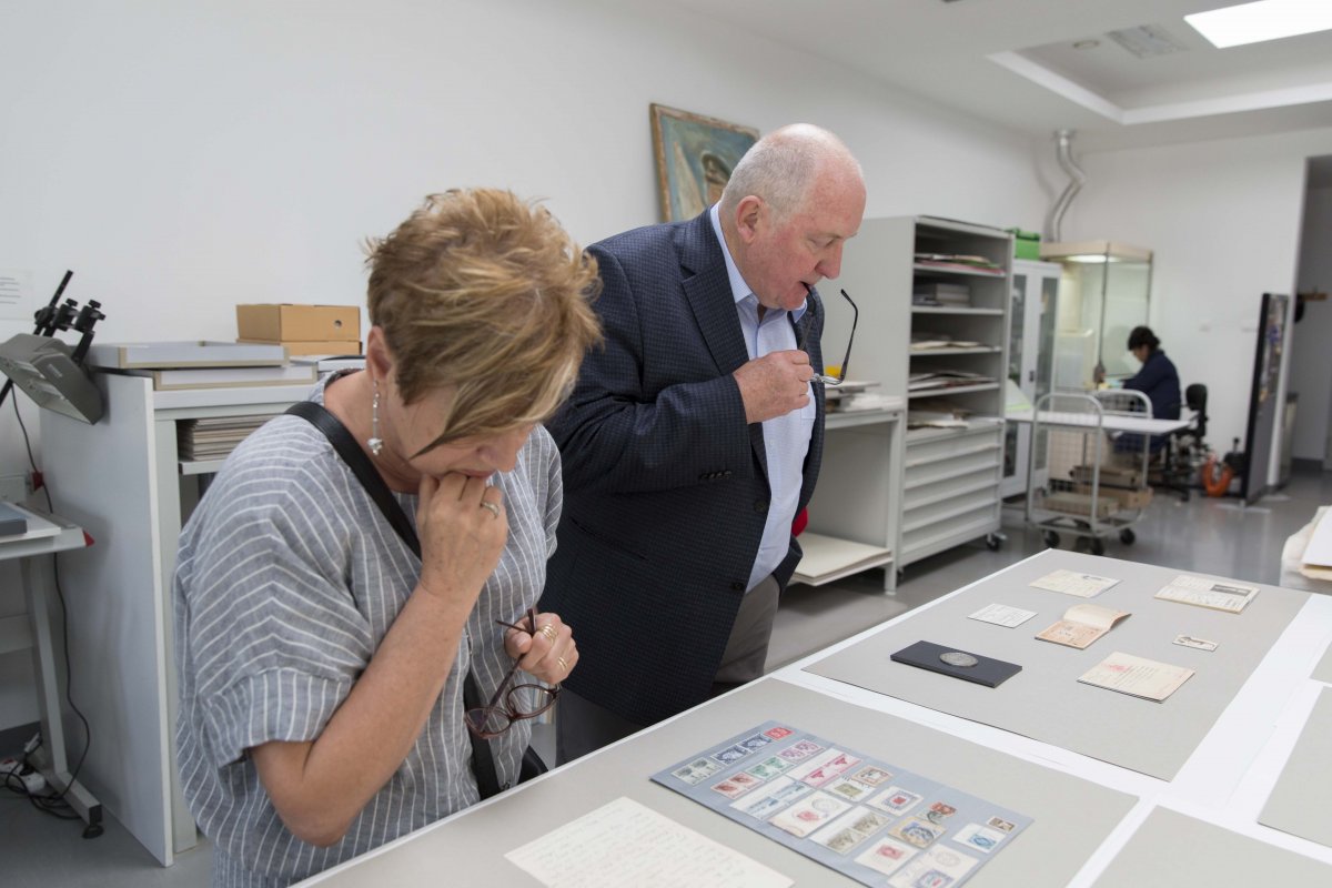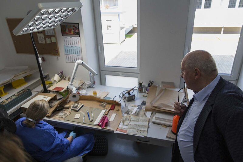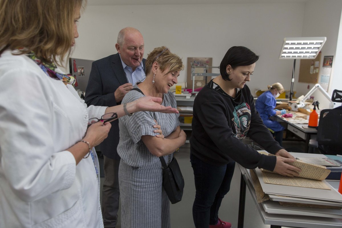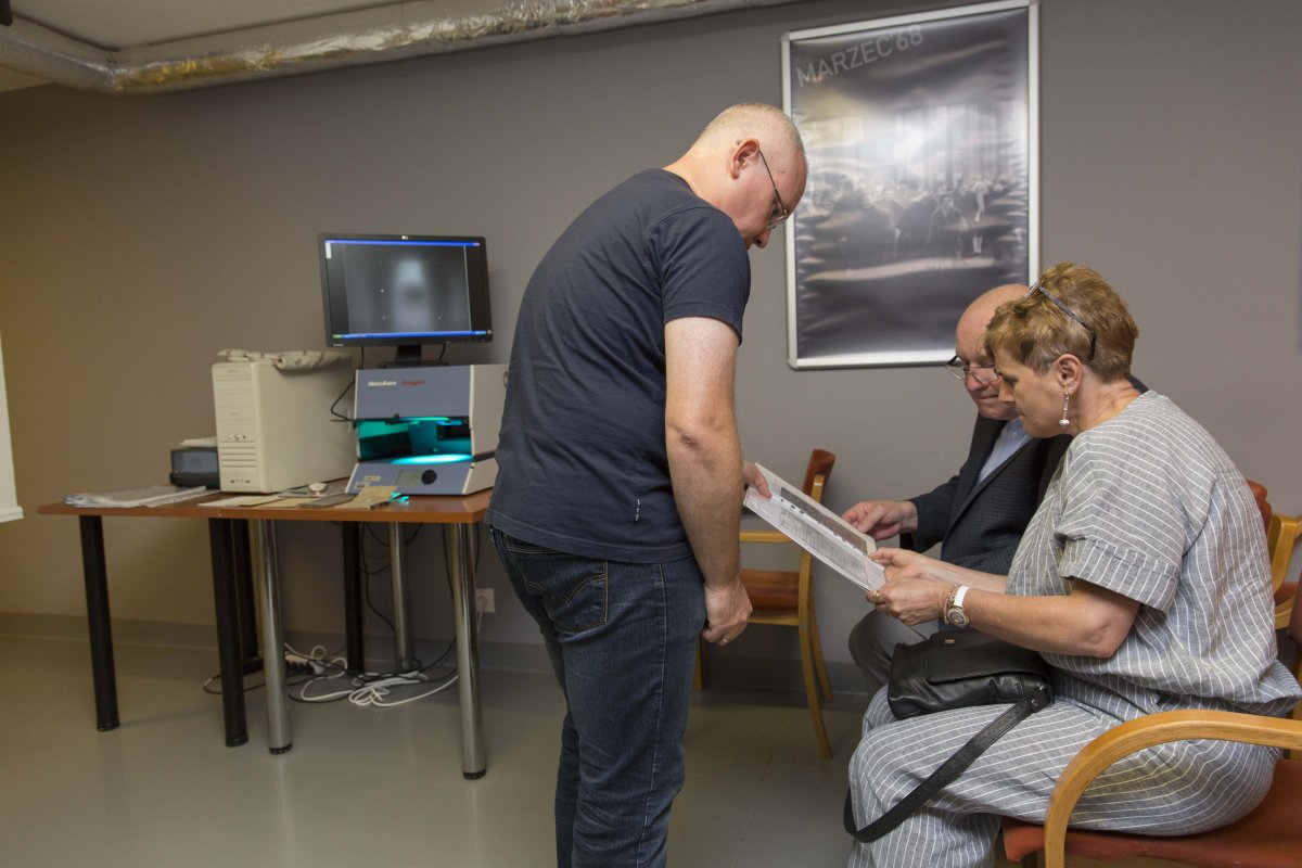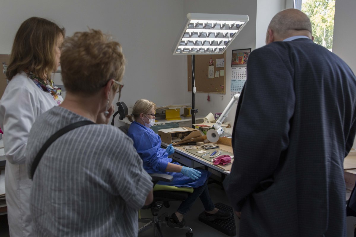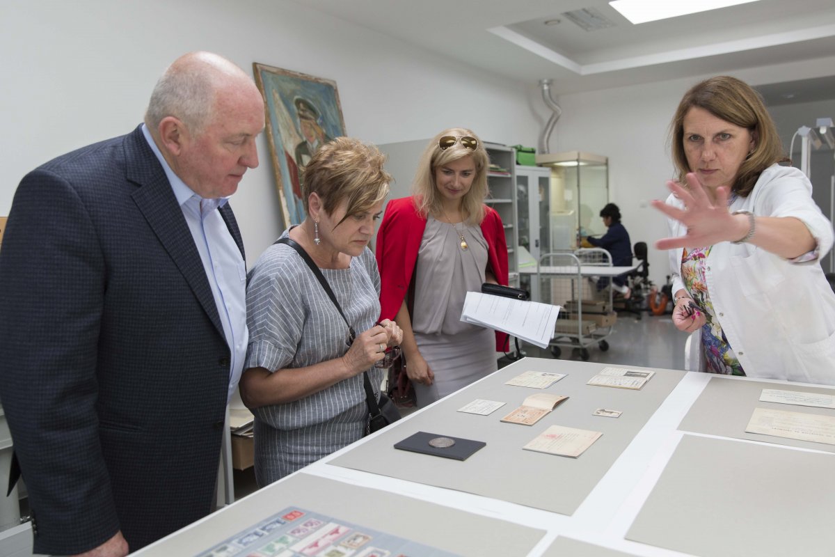 The guests also visited the Archive, where they got to know the main tasks and activities of the Center for Information on the Victims of World War II, visited the warehouse with military documentation, got acquainted with the functionalities of the video-comparator and had the opportunity to look at the work carried out in the Conservation Workshop. They were particularly interested in souvenirs connected with Tadeusz Starzyński, the State Police officer, the Silent-Unseen and Mokotow prisoner, which have been found in Scotland.