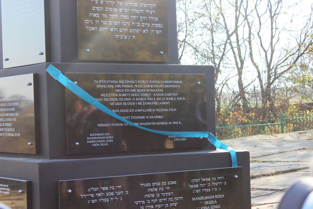 On 18 October commemorations of the victims of the Holocaust took place in Kraśnik. First, a renovated monument dedicated to Jews murdered by the Germans was unveiled. The monument had been erected on the former Jewish cemetery in Kraśnik at Szewska street.
