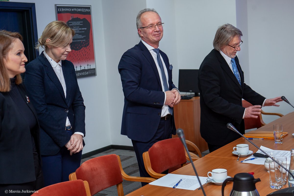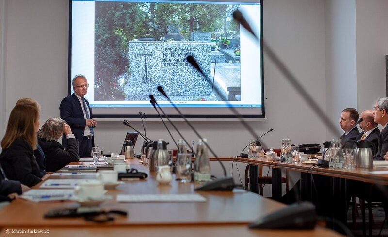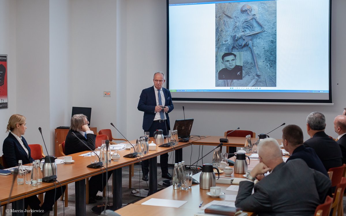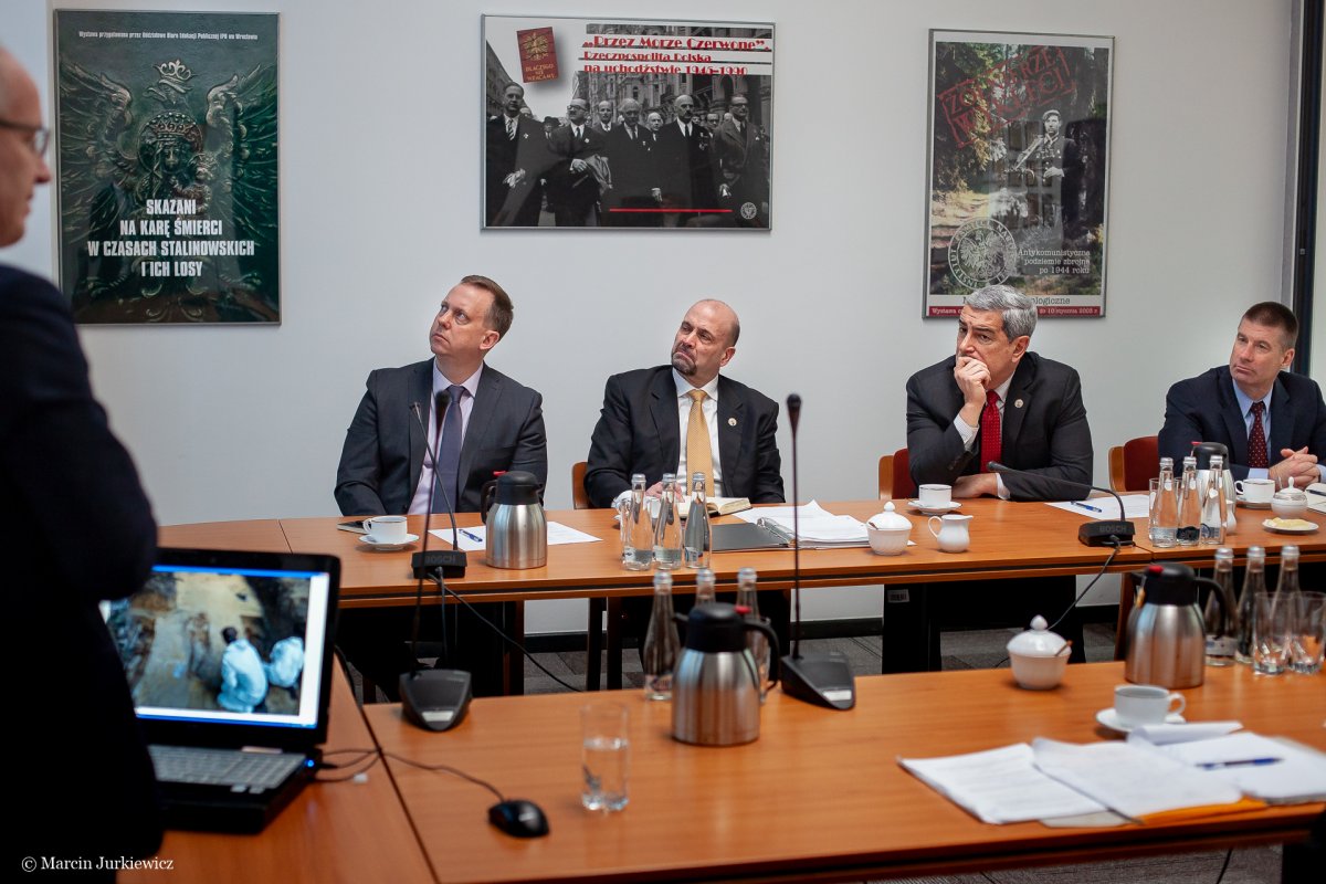 During the meeting, the guests listened to a lecture by Prof. Krzysztof Szwagrzyk "Poland is looking for heroes". After the presentation, they expressed their appreciation for the work the Institute is conducting to commemorate and find the burial sites of murdered soldiers, the victims of communist terror. Both Prof. Szwagrzyk and gen. Kelly K. McKeague noticed the similarities in the work of the IPN and DPAA, these being common values such as responsibility, a sense of duty, professionalism and communication with families who are looking for the places where their loved ones died. The American guests emphasized the fact that the nature of the work of both institutions is very similar. They also pointed out the significance of passion for one’s work, employee involvement and an interdisciplinary approach to the tasks performed. Both sides expressed their willingness to cooperate, counting on mutual support. A joint search for the remains of American soldiers is planned.