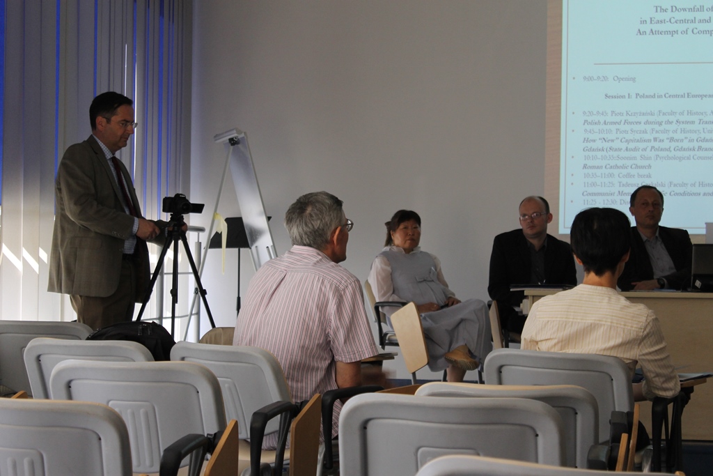 Celem konferencji było przyjrzenie się w porównawczej perspektywie różnym aspektom transformacji ustrojowej w krajach regionu. W sesji „Poland in Central European Context” Piotr Krzyżański (Instytut Historii UAM) przedstawił przekształcenia sfery wojskowej PRL obejmujące sformułowanie nowej doktryny wojennej, restrukturyzację sił zbrojnych oraz „humanizację” stosunków w wojsku – zwalczanie zjawiska fali. Piotr Syczak (Instytut Historii UG) zaprezentował mechanizm powstawania afer gospodarczych (na podstawie afery alkoholowej) w świetle zachowanej dokumentacji NIK województwa gdańskiego. Soonim Shin z Korei Południowej zanalizowała rolę Kościoła katolickiego w Polsce w okresie transformacji w świetle wypowiedzi publicystów katolickich (Jacek Woźniakowski) i świeckich (Zdzisław Krasnodębski. Adam Michnik). Cennym uzupełnieniem sesji było wystąpienie Tadeusza Czekalskiego (Instytut Historii UJ), który przedstawił przebieg transformacji ustrojowej w Albanii i społeczne skutki wdrażania neoliberalnych reform.