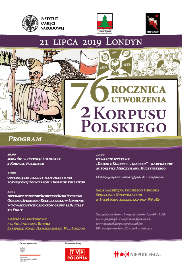 At 10 o’clock, a Holy Mass for the Polish 2nd Corps soldiers in the Church of Saint Andrzej Bobola in London opened the celebrations. After that, the unveiling of a plaque funded by the IPN’s Office for Commemorating the Struggle and Martyrdom in memory of their heroic fight on the Italian front took place.