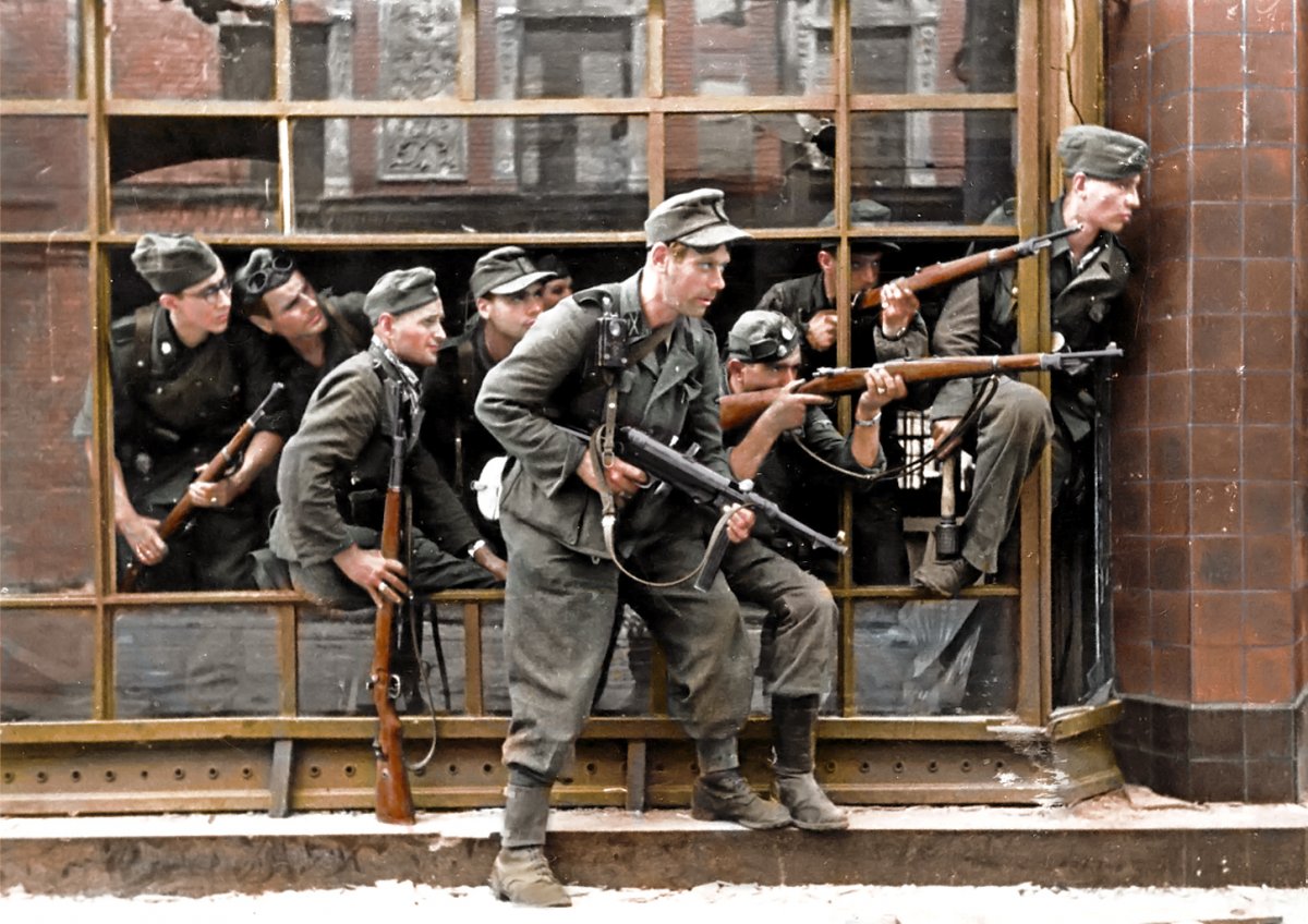 The intricate process of coloring black and white photographs has been carried out by Mikołaj Kaczmarek. The photographs presented here come from collections of, among others, the Warsaw Rising Museum, the Polish Press Agency, the KARTA Center as well as private collections. They are part of an exhibition prepared by the IPN’s National Education Office entitled “Warsaw Uprising 1944. Battle for Poland”.