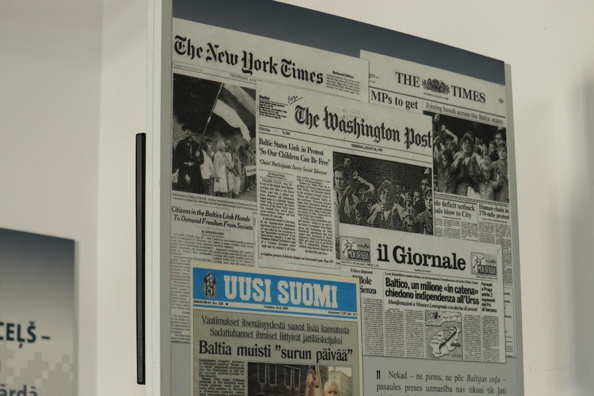 The exposition is in Lithuanian, Latvian and Estonian with English translation. The panels are accompanied by original audiovisual materials from 1989.