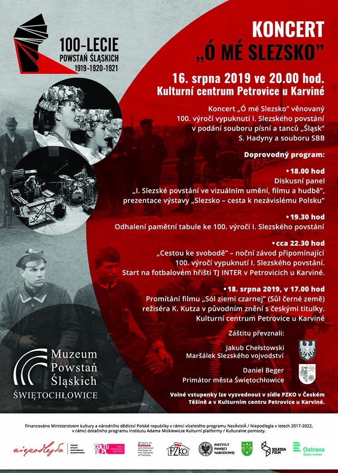 The event began with a discussion panel "The First Silesian Uprising in visual arts, film and music", and was accompanied by the opening of the exhibition entitled "Silesia - Road to Independence". The next point was the unveiling of the commemoration, after which the participants of the ceremony listened to the concert "About my Silesia" performed by the Stanisław Hadyna "Śląsk" Song and Dance Ensemble and the SBB band with Józef Skrzek. The participants also watched a reenactment of the outbreak of the uprising. A night rally (run, march, bicycle ride) to Godów, in which one of the first battles of the First Silesian Uprising took place 100 years ago, was a further attraction of the event.