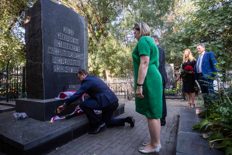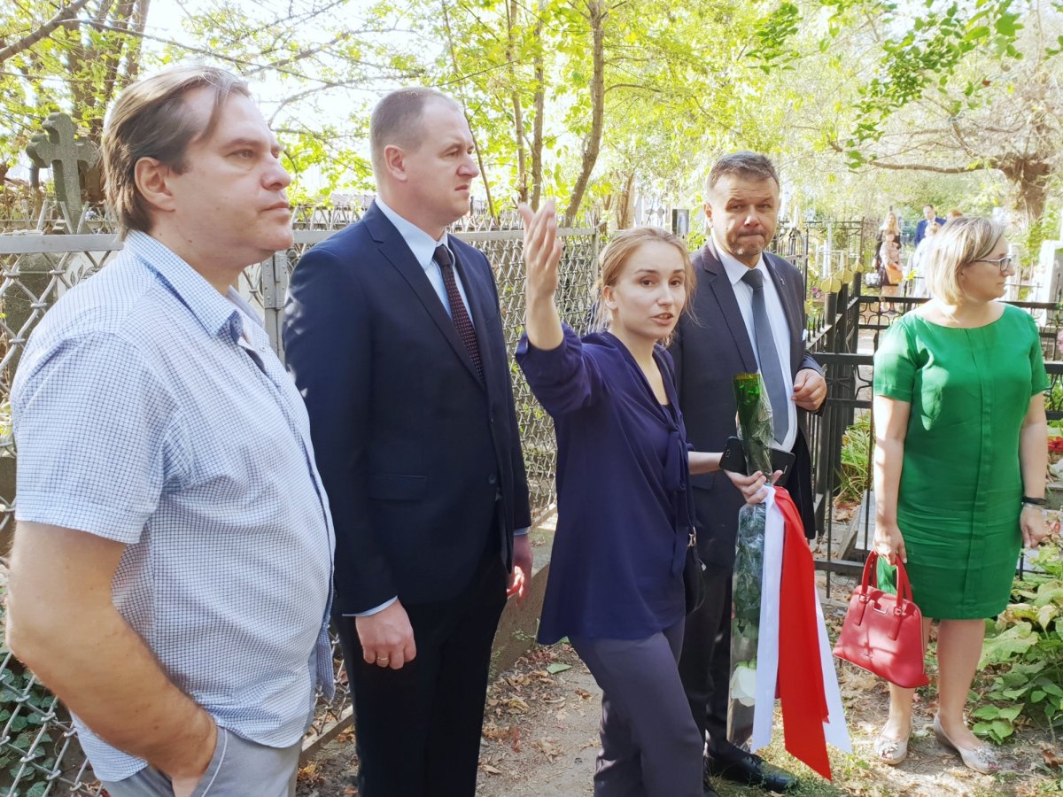 During the next day in Odessa, on 10 September, the delegation of the Institute of National Remembrance headed by President, Dr Jarosław Szarek, the Director of the IPN Archive Marzena Kruk and the Director of the Historical Research Office, Adam Hlebowicz, together with Consul Andrzej Szmidtke, laid flowers on a mass grave located on the route to Ovidopol. Fiodor Bartkowski, a descendant of Poles shot there in 1938 and the person who marked the exhumation site with a cross in 2007, was their guide.