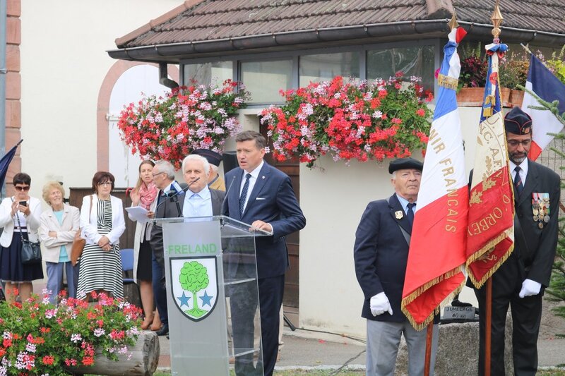 The ceremony of unveiling a commemorative plaque dedicated to the inhabitants of Fréland, who in 1944, under the leadership of Fr. Raymond Vogeli, enabled the escape of Polish prisoners of war (some of whom were taken prisoner in Podkarpacie in September 1939), and offered them shelter and assistance until the arrival of American troops, took place on Sunday, 8 September 2019 in Fréland.