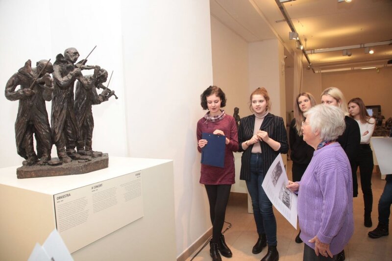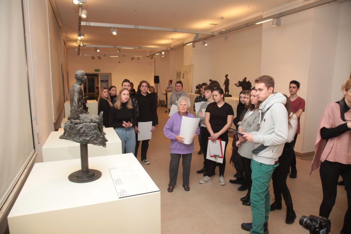 During the second part of the workshop, the students were divided into teams. They received materials containing poems, photographs, paintings and testimonies from the Holocaust. Their task was to identify the sculpture on display which best corresponds to the materials they had received. Then they were asked to justify their choice, presenting the emotions and the fate of a particular character.