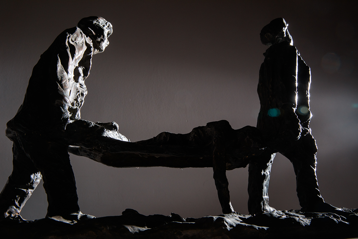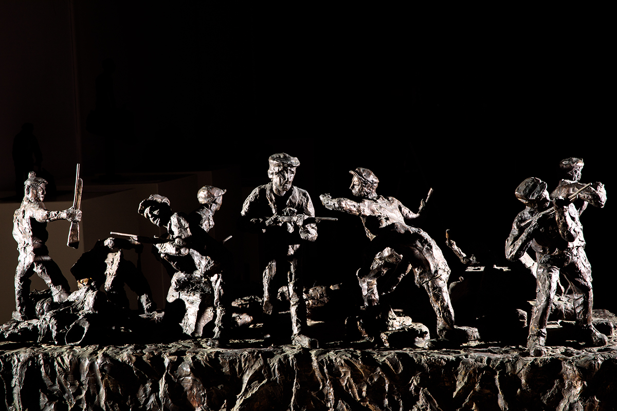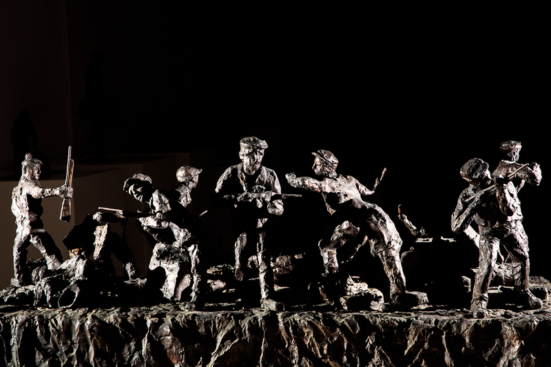 The last two of the exhibited sculptures depict scenes from the rebellion in Treblinka. Ada Willenberg told us how the prisoners made a second copy of the key and obtained weapons from a German warehouse. Today we also know that Jewish insurgents had previously received some weapons through the Home Army from Sokołów Podlaski. The sculpture depicts the prisoners firing rifles and throwing grenades. Several of them have already been hit by enemy bullets. The last scene is the escape. - The first group of inmates started to run (...) they were killed. The rest began to climb over the bodies of those killed and onto the other side of the barbed-wire fence - said the artist's wife. That was the price of freedom.