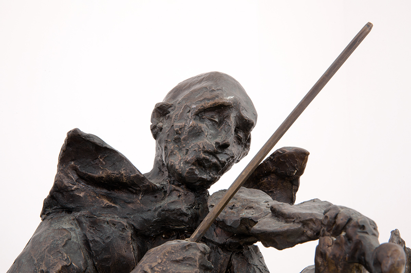 One of the sculptures depicting life in Treblinka II portrays a painter. To some extent, this sculpture refers to the scene from the "Lazarett. - The Germans tricked and lied to their victims until the very last moment - continues the author's wife – The painter had been ordered to paint a fake clock, false signs with the inscription "To Bialystok", 1st class, 2nd class in order to trick the newly arrived victims into believing that they had arrived at a regular station. The idea was to control thousands of people through lies so that they would not rebel.