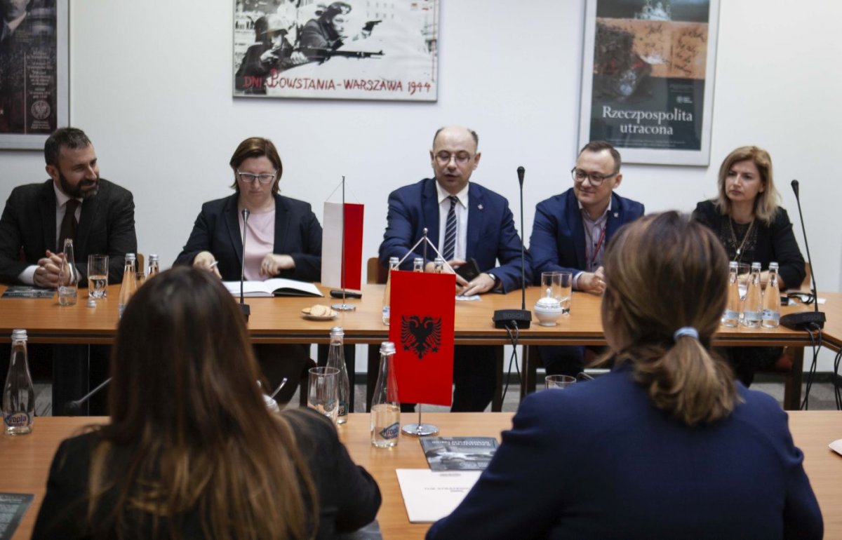 In talks with the Albanian partners, President Szpytma pointed to the key role of education in shaping the awareness of societies and building national identity in a democratic state. He further spoke about educational projects such as workshops, exhibitions, catalogues and thematic publications.