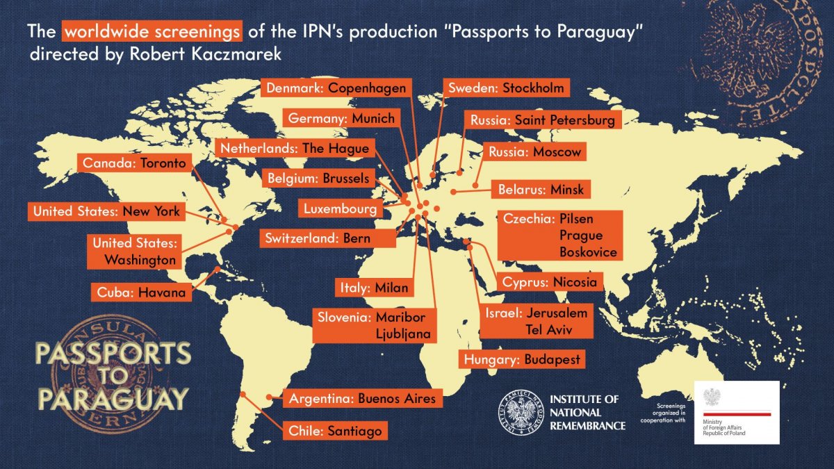 "Passports to Paraguay" is the IPN’s best film production. It has been numerously screened throughout Poland, shown on public television, and most importantly, in many countries around the world. The screenings were organized in cooperation with Polish diplomatic missions (Embassies, Consulates), Polish Cultural Institutes, associations and various Jewish cultural center. The wide reception of the film was possible thanks to the cooperation of the Institute of National Remembrance with the Polish Ministry of Foreign Affairs