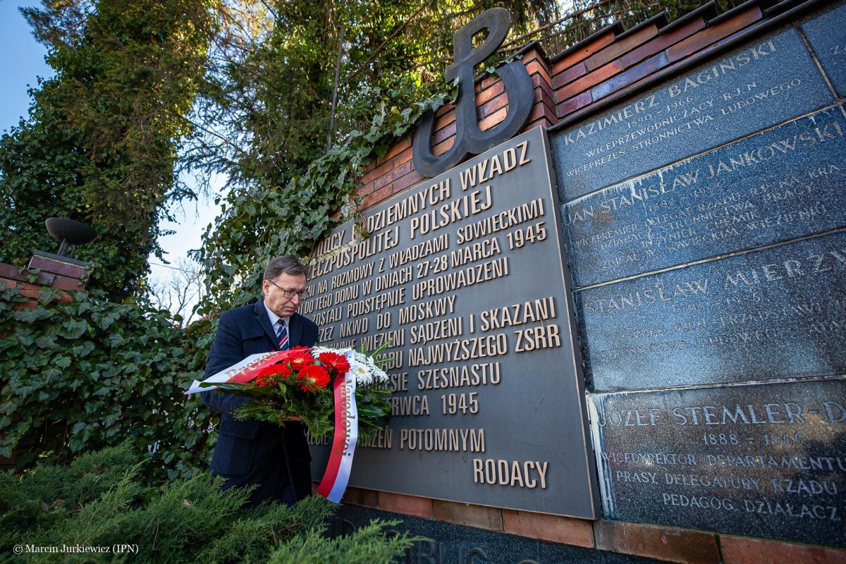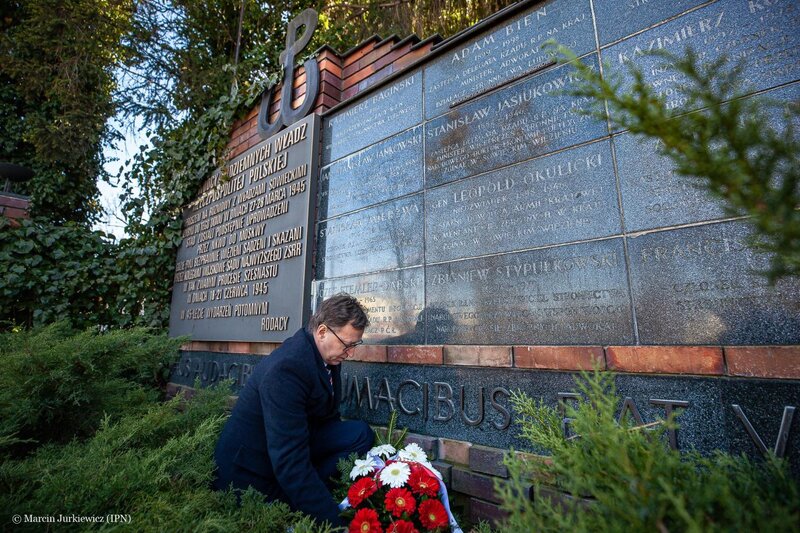 On the 75th anniversary of the abduction of 16 leaders of the Polish Underground State, the President of the Institute of National Remembrance, Dr Jarosław Szarek, paid tribute to them by laying flowers at the monument in front of the villa in Pruszków, from where they were abducted to the USSR.