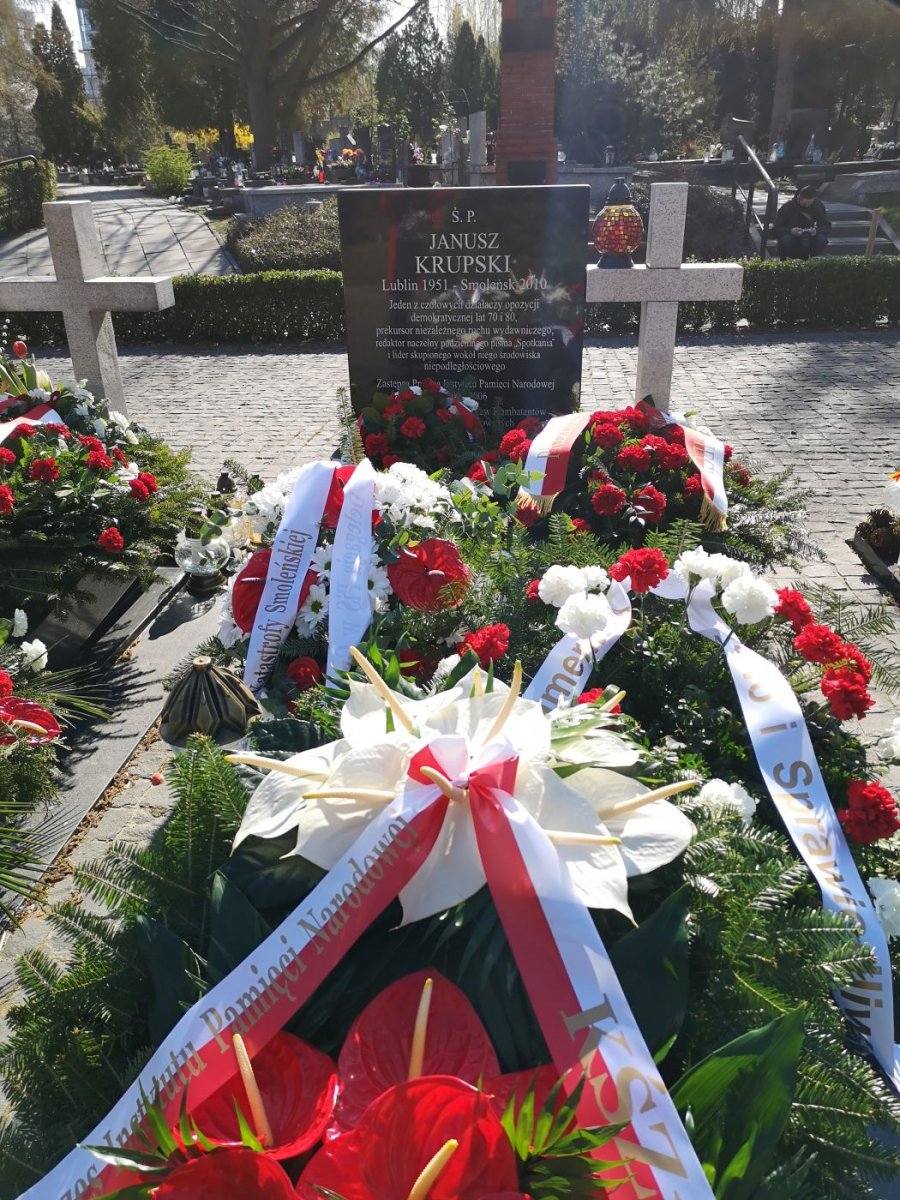 On behalf of the President, Deputy Presidents and the employees of the Institute, the Deputy Director of the IPN’s Office of the President and Social Communication Joanna Pobocha-Górkiewicz laid wreaths on the grave of Janusz Krupski and at the monument to the Victims of the Smolensk Air Disaster located at the Warsaw Powązki cemetery.