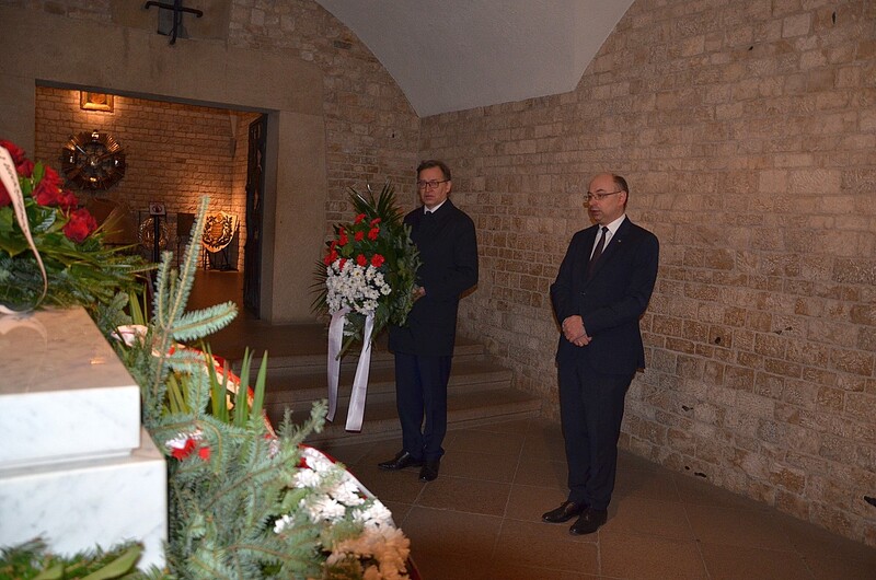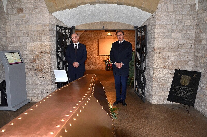 On the 10th anniversary of the tragedy, the President of the Institute of National Remembrance Dr Jarosław Szarek and Deputy President Dr Mateusz Szpytma laid flowers on the sarcophagus of the Presidential Couple - Maria and Lech Kaczyński in the crypt of the Wawel Cathedral in Kraków. They also said a short prayer by the casket of Marshal Józef Piłsudski.