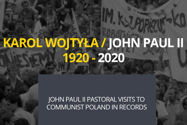 On the IPN’s portal devoted to Papal pilgrimages to the homeland, we present digital copies of documents constituting the archival legacy of the activities of the communist Security Services, descriptions of the various stages of the pilgrimages, photographs (taken both by the Security Services as part of official activities, as well as photos from private collections), links to historical and educational articles, leaflets, copies of the Polish community press and many other archival memorabilia of John Paul II's visits.