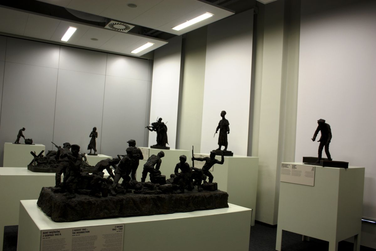 Another shocking memory, artistically depicted by Willenberg in a sculpture, is the figure of a young, beautiful girl, her head half shaved, who is aware of what awaits her. She is full of fear, but also regret and seems to be saying goodbye to the world. Other sculptures include a prisoner collecting bottles, or an inmate sorting the belongings of those who had already been gassed. The largest and most intricate sculpture is a scene depicting the prisoners' rebellion. The dynamic and detailed form provides insight into the realm of this desperate fight.