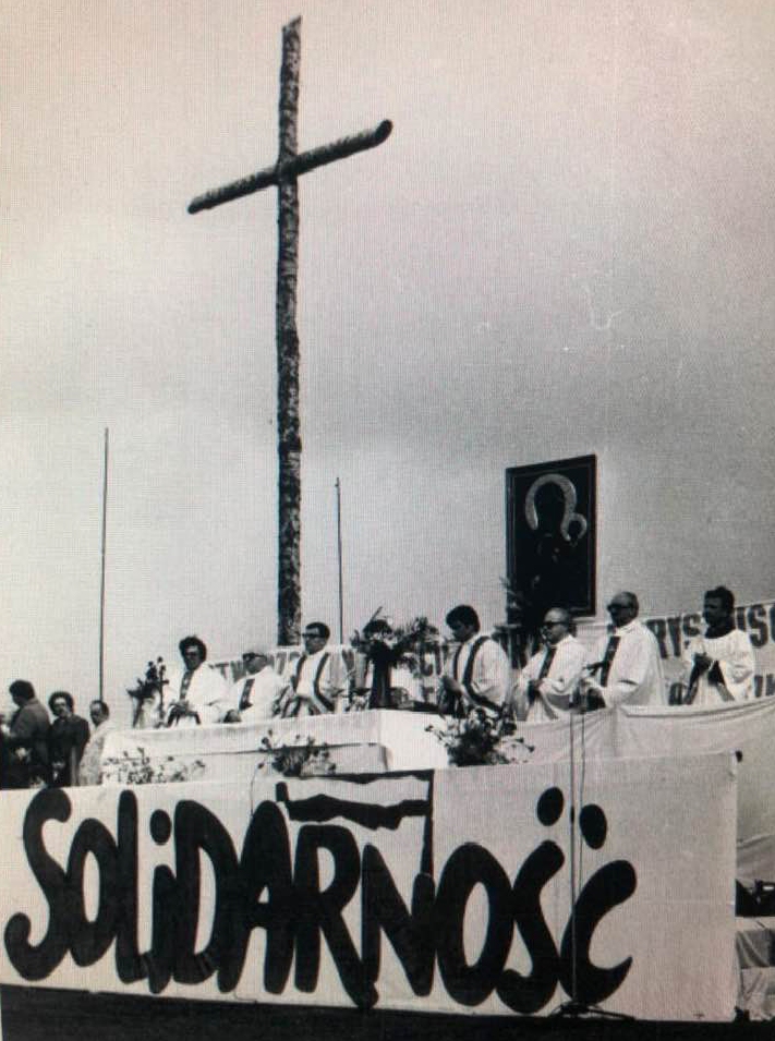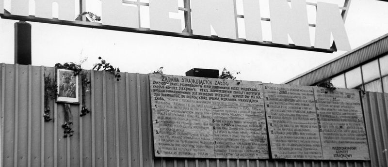 Workers made demands connected with social issues, but they also demanded dignity, truth, freedom. Writer Lech Bądkowski, after he had read a resolution of the Section of the Polish Writers' Union in Gdańsk, was enthusiastically accepted by acclamation as a member of the Presidium of the Inter-Enterprise Strike Committee, which seems symbolic. In protesting factories, which set an example of self-organization, seriousness and responsibility, people became better, kindness – so rare so far – started to appear. Holy masses, prayers, crosses in production halls, paintings of the Mother of God and John Paul II on gates of factories, then return of statues of St. Barbara, St. Florian, symbols on trade unions' banners with images of the Virgin Mary ‒ it all showed the foundations to which the protest referred. The religious song Boże, coś Polskę (God who saved Poland) sung so many times, with a verse “May you return our free Homeland to us, oh Lord” set a far-reaching goal, not specified in the 21 postulates. A lawyer Jan Olszewski, when he saw white and red banners on the factories on strike, and workers with white and red bands on their arms, and when he witnessed the atmosphere in the shipyard, was reminded of the moments experienced in Warsaw after 1 August 1944.