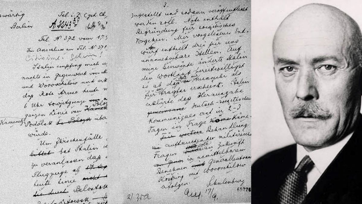 Following the Molotov-Ribbentrop Pact, Germany and the USSR collaborated in their aggressive policy against Poland, albeit the Soviets, destracted by the conflict with Japan, did not match the German move right away and delayed military action. In mid-September 1939, however, with the Japanese problem out of the way, Stalin could invade the Polish territory and attack the army, already fighting against overwhelming Wehrmacht forces. To that effect, in the early hours of 17 September, the Soviet leader summoned Ambassador von Schulenburg to Kremlin. What transpired during that meeting was accurately reported by the German diplomat in a cable he sent his superiors in Berlin a few hours later: