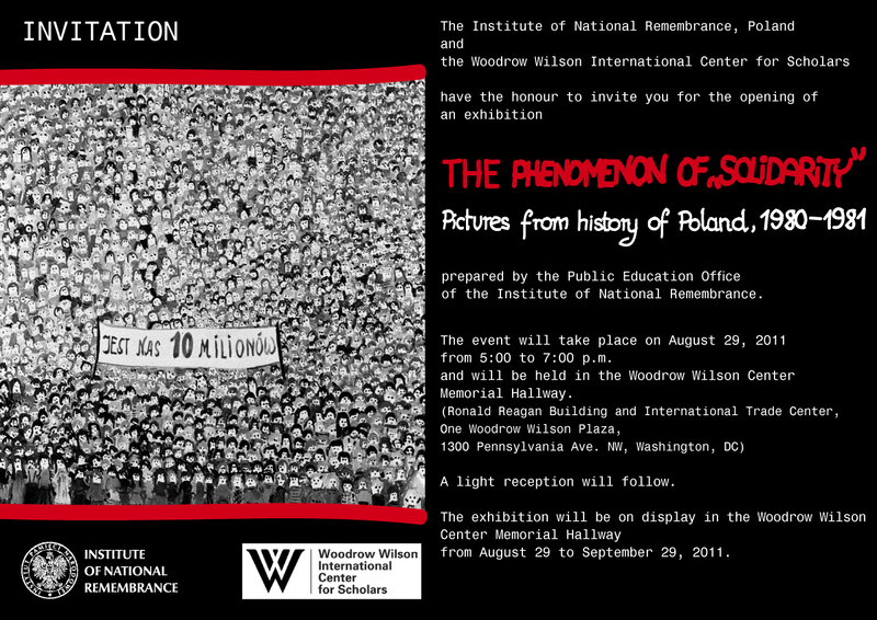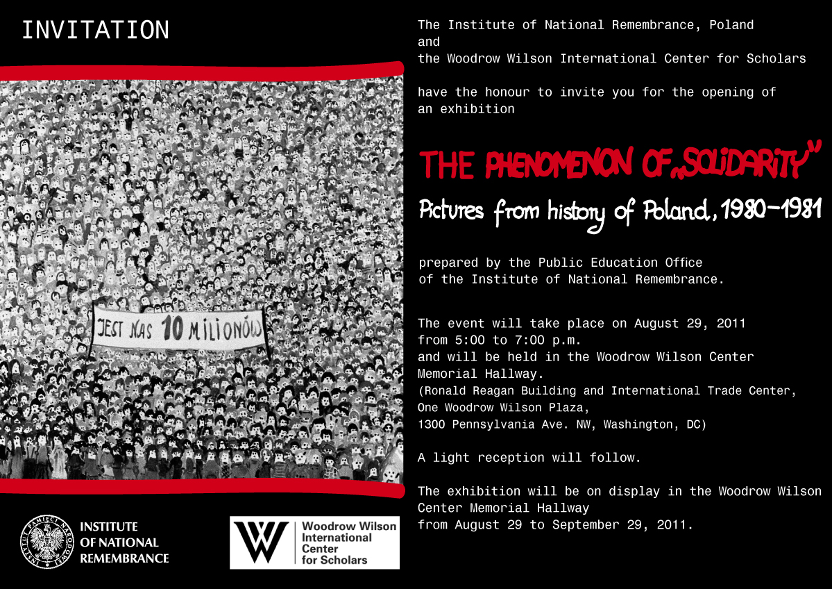 On 29 August 2011, the Woodrow Wilson Center Memorial Hallway in Washington an opening ceremony of the exhibition "The Phenomenon of Solidarity: Pictures from the History of Poland, 1980–1981” took place. The exhibit was prepared by the Institute’s Public Education Office. The opening was attended by dozens of people, representatives of both the Polish and American communities. On behalf of the Institute of National Remembrance, Agnieszka Rudzińska, the Deputy President of the Institute opened the exhibition. During the opening there also spoke Carl Gersh, President of the National Endowment for Democracy and Timothy McDonnell, representing the Woodrow Wilson Center. The ceremony was also attended by Robert Kupiecki, the Ambassador of the Polish Republic in the USA.