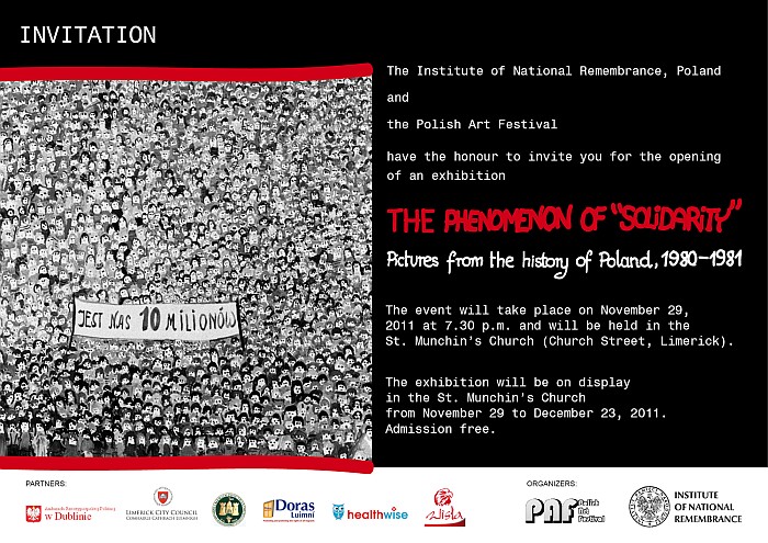 The Institute of National Remembrance and the Polish Art Festival organised the exhibition “The Phenomenon of Solidarity: Pictures from the History of Poland, 1980–1981” prepared by the Public Education Office of the Institute of National Remembrance. The event was co-organised by the Limerick City Council and the Embassy of the Republic of Poland in Dublin.