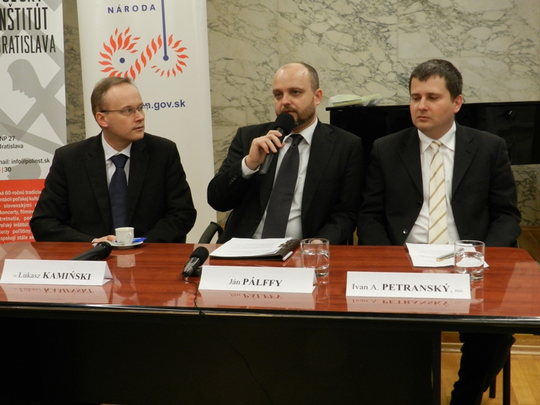 On February 23, 2012 the President of the IPN Łukasz Kamiński attended meetings organized by the Polish Institute in Bratislava and the Slovak Nanion’s Memory Institute (Ustav Pamäti Národa). President Kaminski met at ÚPN with its director dr Ivan Petransky, with whom he discussed the state of cooperation between the institutes as well as the possibilities of cooperation in the future. President of the IPN and the Director of ÚPN have subsequently delivered lectures on the activities and achievements of their respective institutions during the periodical meetings entitled "Discussion evenings of ÚPN" at the seat of the Polish Institute in Bratislava.