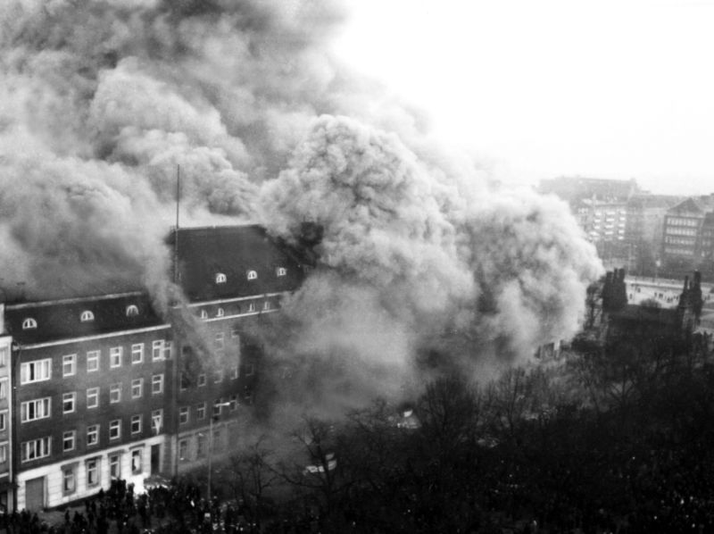 Watching the party buildings in flames