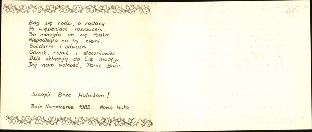 The obverse of the Christmas card, Nowa Huta 1983. From the collection of the IPN Archive in Cracow. -