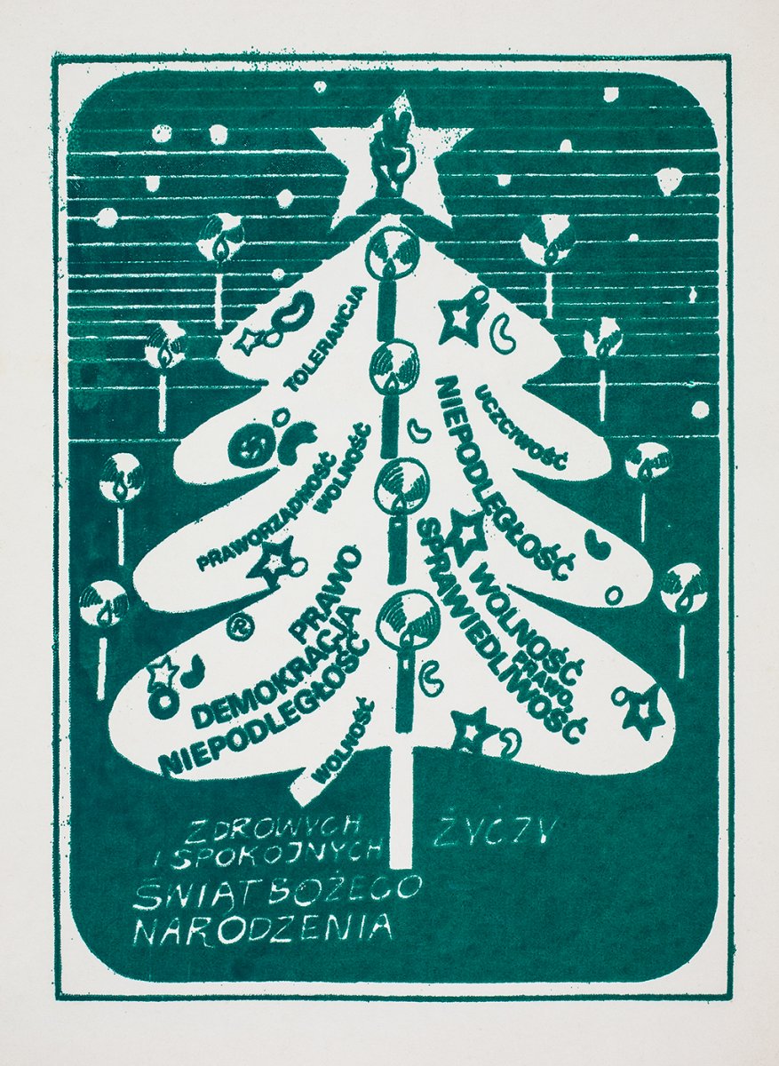 Christmas card from 1983, printed by solidarity circles. From the collection of the IPN Archive in Cracow. -