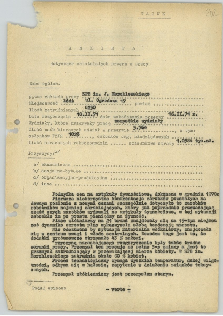 1971 Łódź textile workers strike - archival source