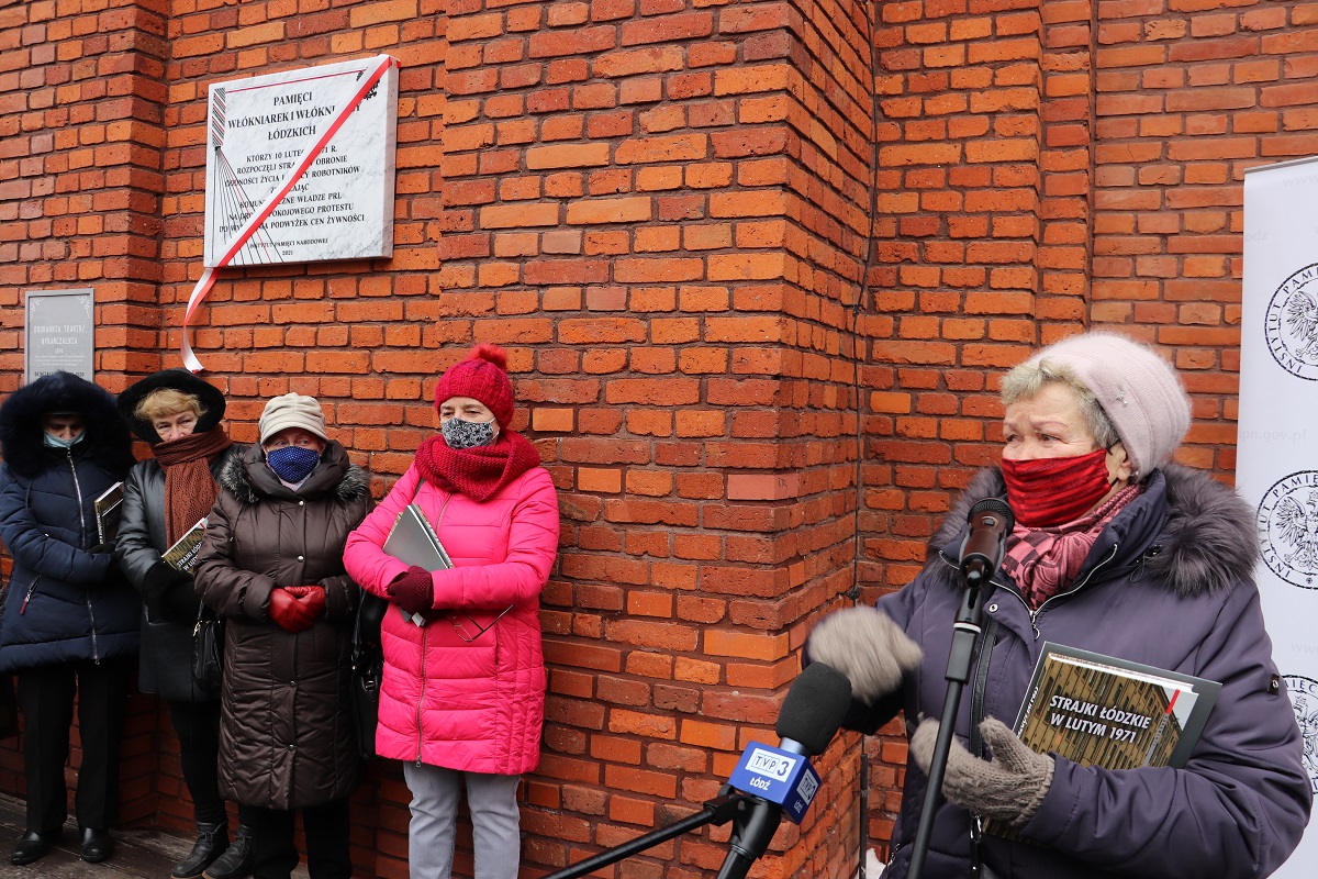 The President of the Institute of National Remembrance, Jarosław Szarek Ph.D., took part in the ceremonial unveiling of a plaque commemorating the February 1971 strike of female textile industry workers from Łódź.The event was held at the Manufaktura Center in Łódź (the building of the former finishing shop - at the entrance to the Museum of the Factory) on 15 February 2021 at noon.