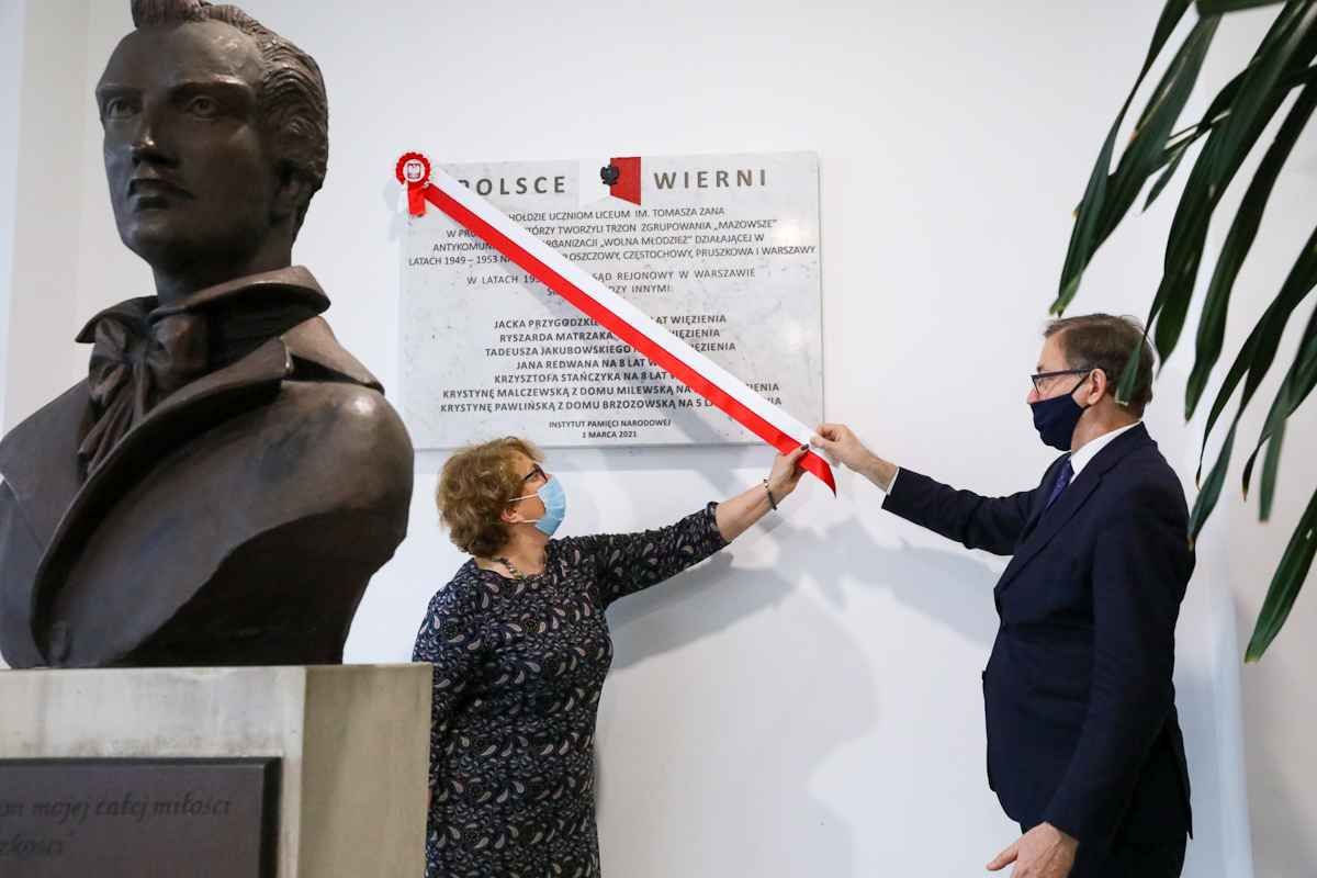 On 1 March in Pruszków, Jarosław Szarek unveiled a memorial plaque commemorating the "Free Youth" underground organization, which in 1946 was born in a secondary school in Włoszczów, but soon spawned to Pruszków, Częstochowa and Warsaw. It was one of hundreds of such groups in the country, spontaneously formed to counter communist propaganda and indoctrination. While the anti-communist underground generally drew grown-ups (admittedly, many of them very young), here it was teens, barely out of their childhood, who decided to express their dissent to the Soviet-sponsored rule through education.